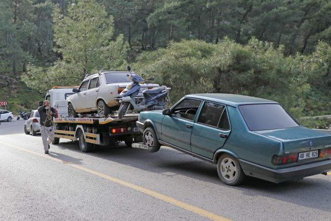 İhtara uymayan sürücü, polis ekiplerinin kovalamacası sonucu Kayaköy yolunda yakalanacağını anlayınca otomobilini bırakarak yaya kaçtı.