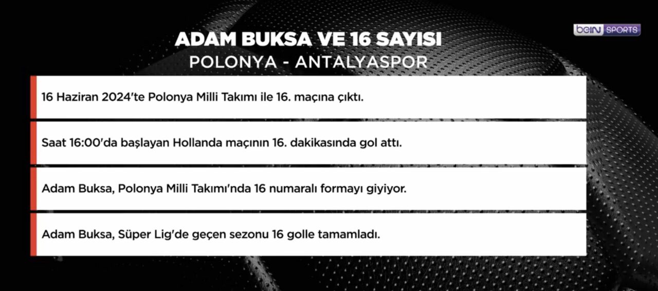 beIN Sports, Polonya Milli Takımı futbolcusu Buksa’nın 16 sayısı ve Bursa’yla olan dikkat çeken tesadüflerini paylaştı…