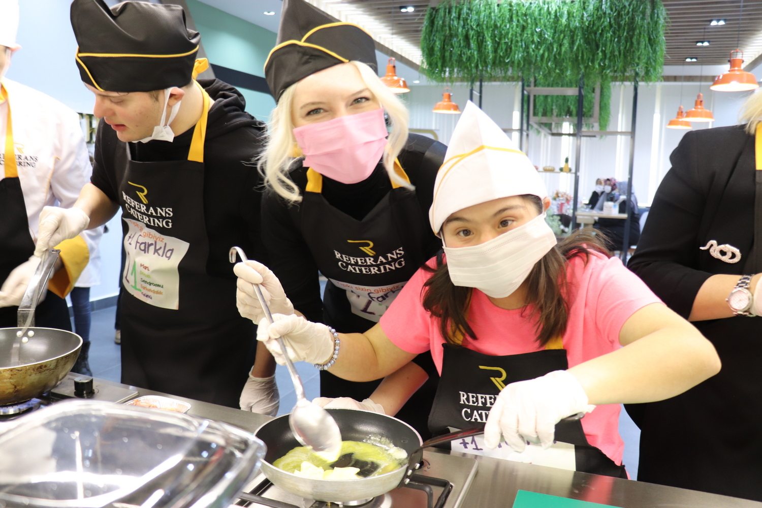 Referans Catering Yönetim Kurulu Üyesi Feray Uzunçayır ev sahipliğinde ve Melek Yüzler Down Sendromu Derneği iş birliğinde gerçekleştirilen etkinlikte; TÜGİAD Genel Başkanı ve DOSABSİAD Başkanı Nilüfer Çevikel, TÜGİAD Üyeleri Nur Gül Arslan, Arzu Işıksoy, Özge Öğütçü ve Şerife Faidelibaş, down sendromlu çocuklarla birlikte yemek yaptılar.