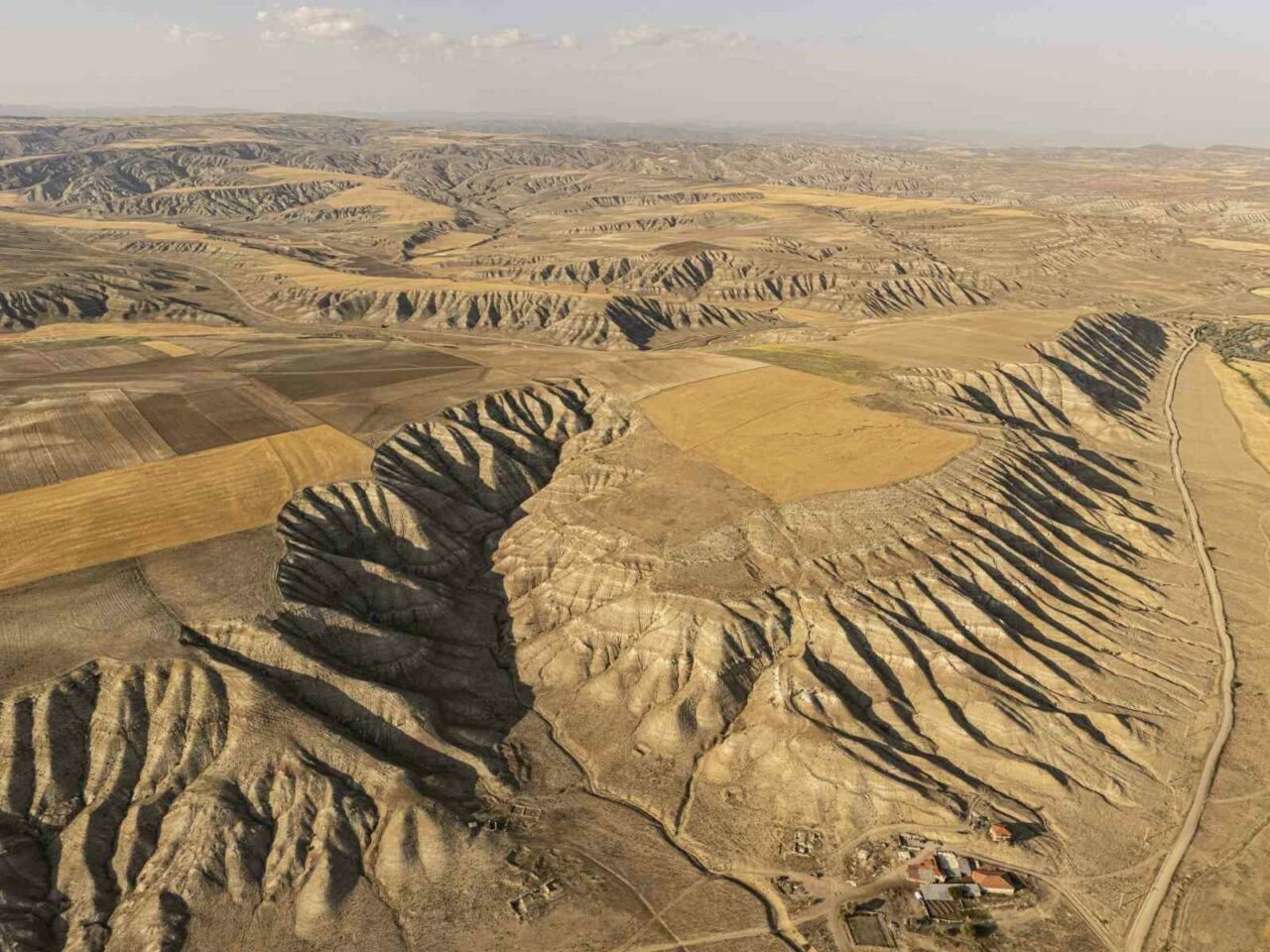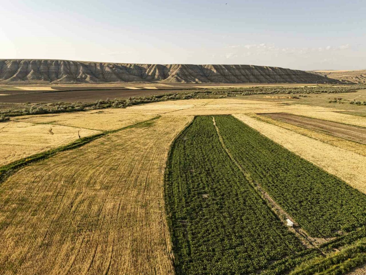 Tepelerin hemen yanı başında uzanan geniş tarım arazileri ise bölgenin hem görsel hem ekonomik zenginliğini ortaya koyuyor.