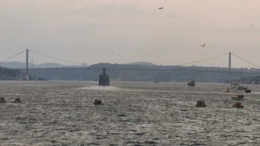 15 Temmuz Şehitler Köprüsü altına ulaşan geminin güvertesinde çok sayıda güvenlik ekibi görülürken, Savaş gemilerine boğazı geçişi sırasında Türk Sahil Güvenlik botları da eşlik etti.