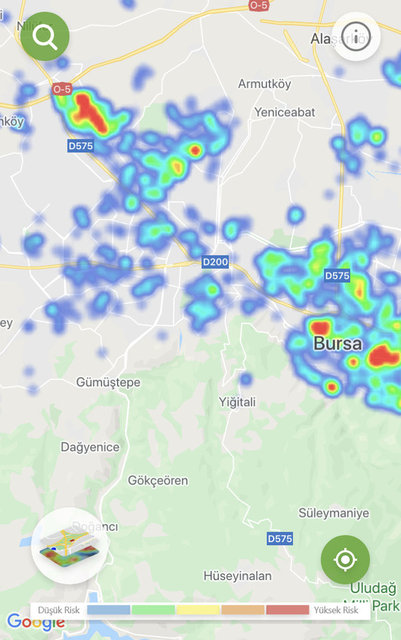 İşte Hayat Eve Sığar uygulamasına göre, Bursa’ın koronavirüs yoğunluk haritası…