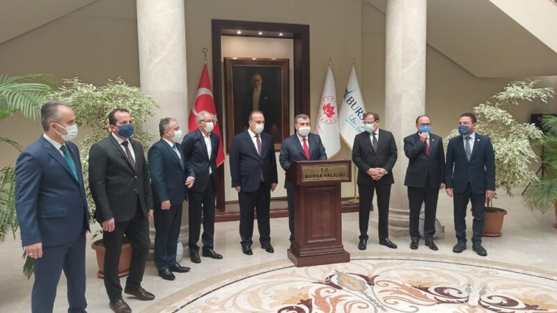 Bakan Fahrettin Koca’nın Bursa Valiliği’ndeki ziyaretine Bursa Milletvekilleri, Bursa Büyükşehir Belediye Başkanı Alinur Aktaş ve protokol de eşlik etti