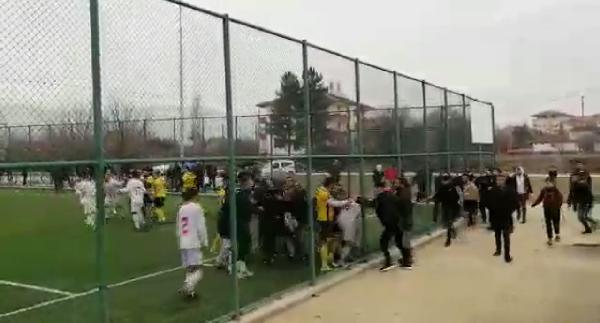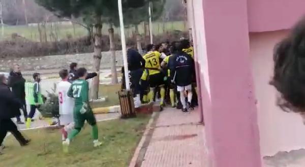 Tokat 1’inci Amatör Küme mücadelesinde Topçamspor ile Zile Belediyespor, Pazar Stadyumu’nda karşı karşıya geldi. Topçamspor’un 4-2 üstünlüğüyle devam eden karşılaşmanın 90+3’üncü dakikasında yaşanan faul pozisyonu sonrası iki takımın futbolcuları ve yedek kulübesindekiler arasında tartışma çıktı. Tartışma, kısa sürede kavgaya dönüşürken futbolcular, tekme tokat birbirine girdi. Hakem Sezgin Uyar, iki takımdan da 4 futbolcuya kırmızı kart gösterdi. Hakem, olayların ardından maçı tatil edip, soyunma odasına gitti. Öte yandan kavga anı, karşılaşmayı izlemek için stadyumda bulunanlar tarafından cep telefonu kamerasıyla kaydedildi. Olay yerinde bulunan polis ekiplerinin müdahale ettiği kavga, takımların soyunma odasına girmesiyle sona erdi. (DHA)