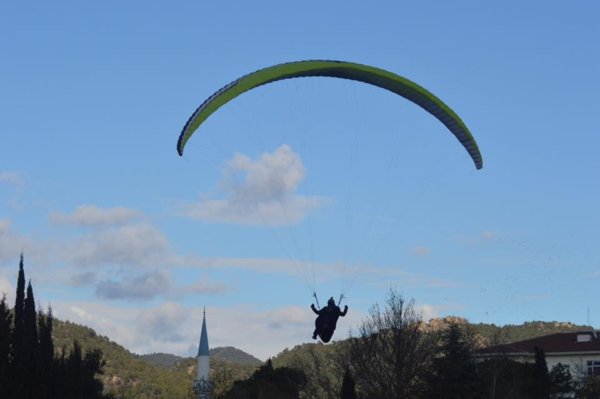 Olay; Bilecik’in Osmaneli ilçesinde meydana geldi. Bilecik 1. Amatör Lig 15’incşi haftasında Osmaneli İlçe Stadı’ndan oynanan 1308 Osmaneli Belediyespor- 1299 Bilecik Kulübü müsabakasının ilk yarının bitiş düdüğünün hemen ardından taraftar, sporcular ve hakemler büyük bir sürprizle karşılaştı. Yamaç paraşütü ile uçuşta olan Hakan Kırlı hakemin ilk yarıyı sona erdiren düdüğü sonrası seyircilere şov yaparak sahaya indi. Soyunma odasına gitmekte olan sporcular ve hakemler bu güzel anı hayretle izlerken, orta hakem hızla sahaya inen yamaç paraşütçüsü Hakan Kırlı’nın yanına giderek kırmızı kartını gösterdi. Tüm seyirciler hakemi ve yamaç paraşütçüsünü ayakta alkışladılar. Osmaneli, belki de dünyada ilk kez bir orta hakemin yamaç paraşütçüsünü kırmızı kart vermesine şahit oldu. (İHA)