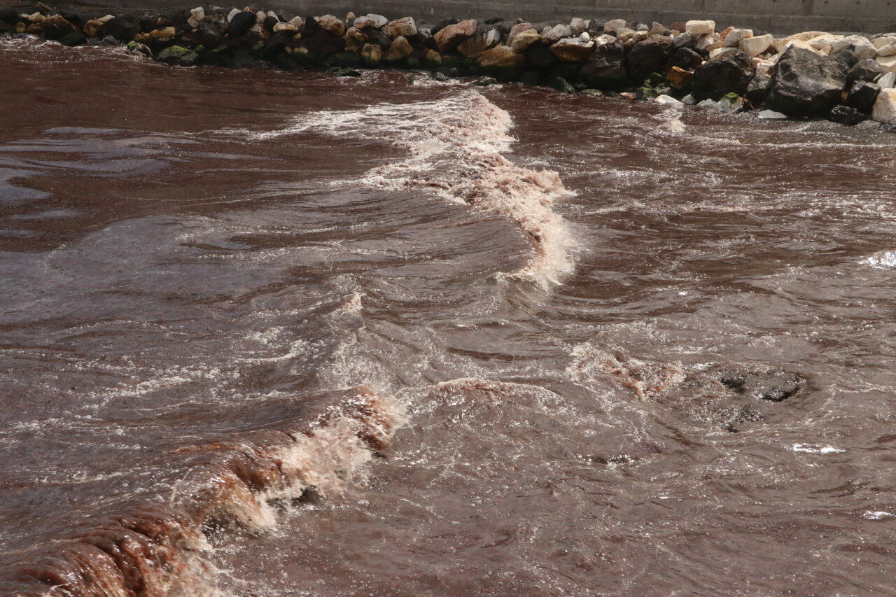 Sahildeki bazı alanlarda kırmızı yosun birikti.
