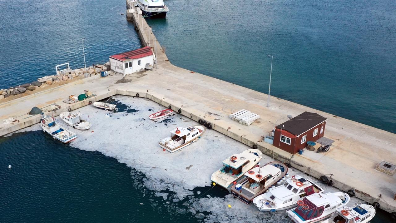 Bursa`nın Gemlik ilçesinde de deniz salyasının balıkçı barınağındaki teknelerin de etrafını sarması kayıtlarda yer aldı.