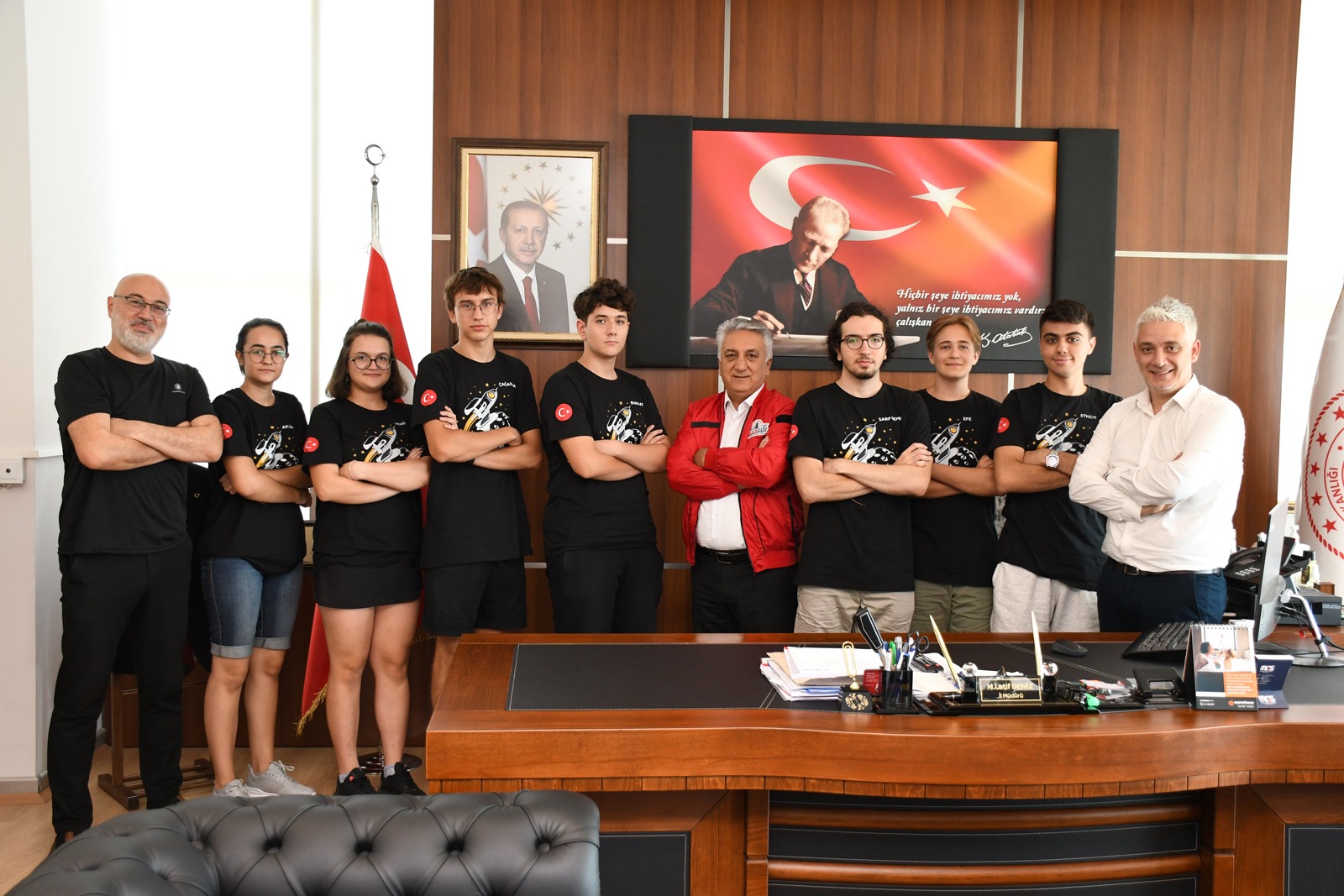 Sanayi ve Teknoloji Bursa İl Müdürü Latif Deniz’i makamında ziyaret eden Şahinkaya öğrencileri, final öncesi bilgilendirmede bulundular. Gençler ile yakından ilgilenen Latif Deniz, Bakanlık ve Bursa İl Müdürlüğü olarak her zaman yanlarında olduklarını bilmelerini istediklerini söyledi. Teknoloji alanında yapılan her girişimin çok kıymetli olduğunun altınıçizen Deniz, öğrencilerin projeden, staja, teknik ziyaretlerden projenin patentine kadar her alanda Sanayi ve Teknoloji İl Müdürlüğünden destek alabileceklerini, kapılarının gençlere her zaman açık olduğunu söyledi.