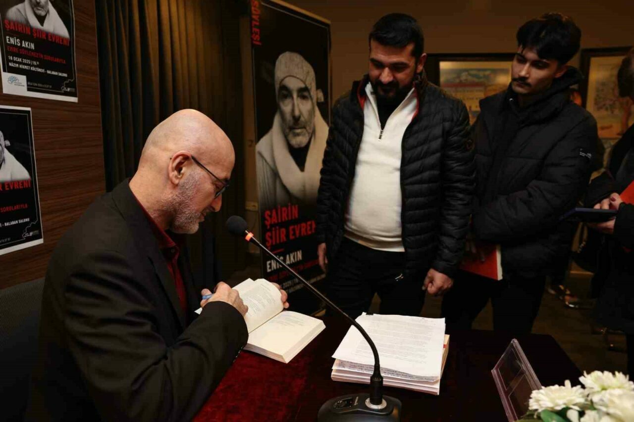 ve kültürünü geliştirmek amacıyla sürdürdüğü ‘Şairin Şiir Evreni’ söyleşisinde, kıymetli isimleri ağırlamaya devam ediyor. Programın 2025 yılının ilk konuğu ise deneyimli yazar Enis Akın oldu. Nazım Hikmet Kültürevi Balaban Salonu’nda gerçekleştirilen etkinliğin moderatörlüğünü de genç Yazar Emre Söylemez yaptı.