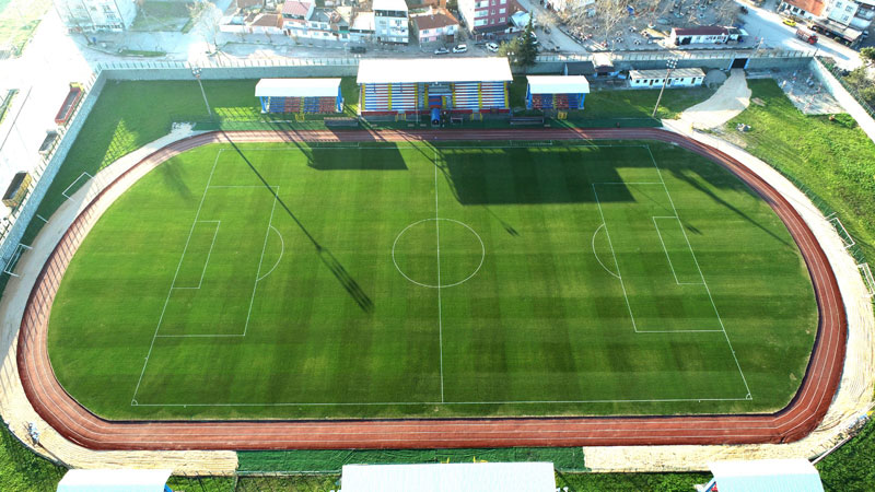 Yapılan çalışmaların ardından havadan görüntülenen saha zemini adeta görsel bir şölene dönüşürken Süper Lig’de oynayıp zeminden yakınan ve arayışa giren profesyonel kulüplere de örnek oluyor.