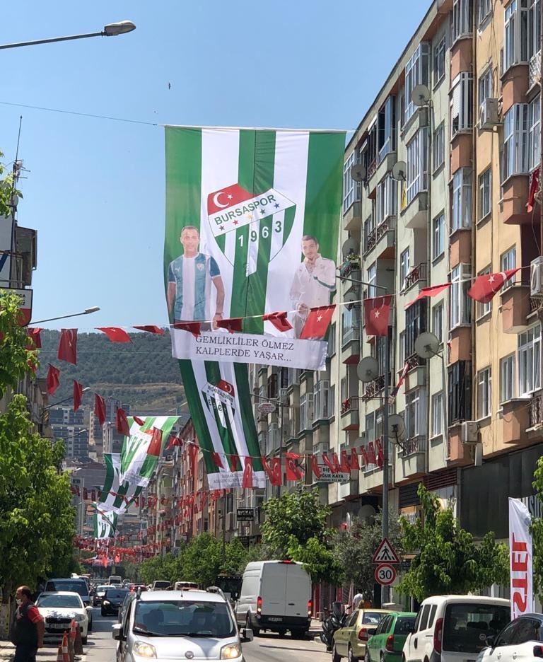Gemlik’i Bursasporluların kalesi olarak gören yeşil beyazlı taraftar, arma uğruna yaşamlarını yitirenlere gösterilen vefa için de emeği geçenlere teşekkür etti.