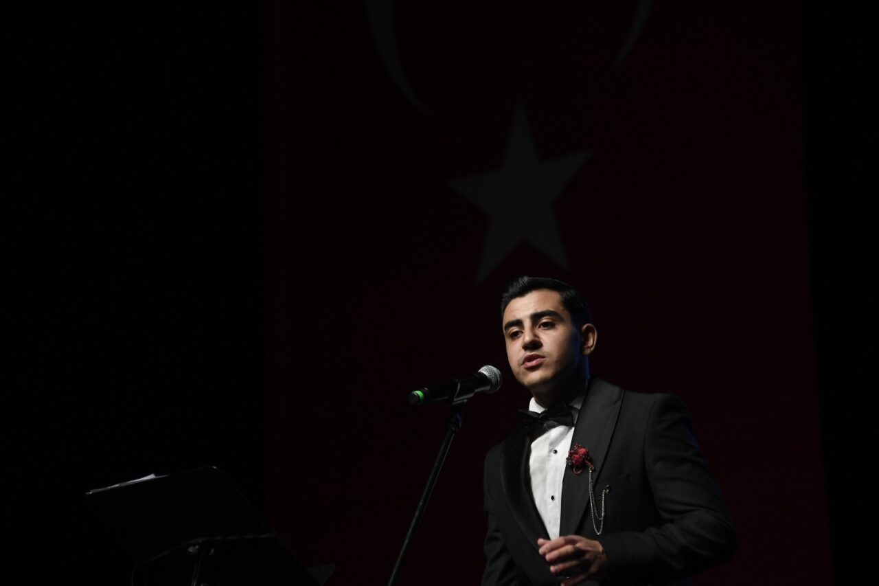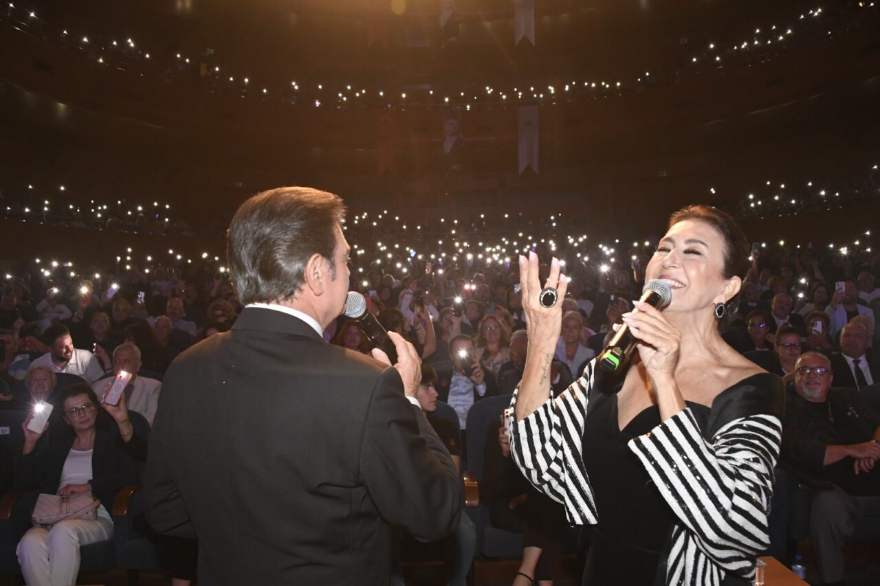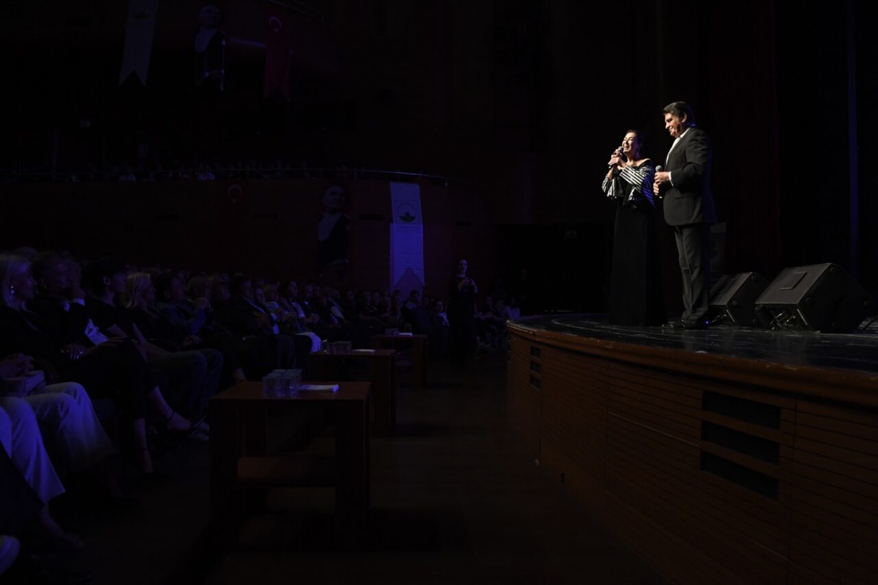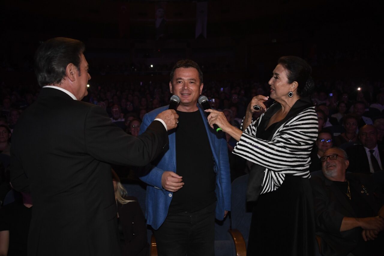 Gecenin sonunda Başkan Aydın, Sanatçılar Yıldırım Bekçi ve Melihat Gülses ile Zeki Müren Güzel Sanatlar Lisesi öğrencilerine teşekkür çiçeği verdi.