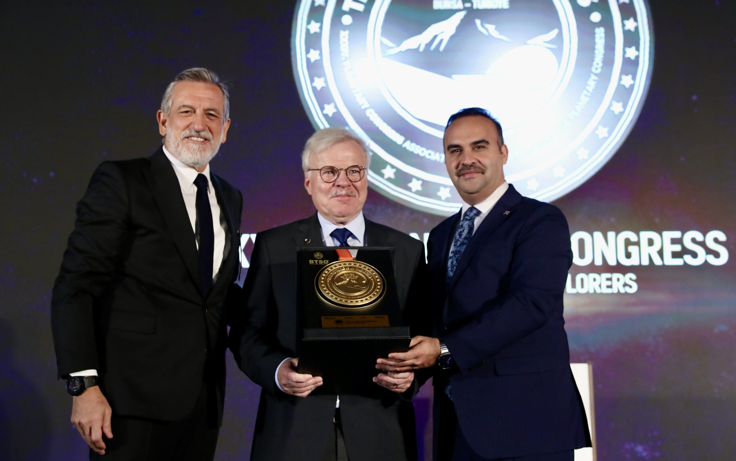“Türk astronot ve bilim misyonu kapsamında ülkemizin insanlı ilk uzay görevini planladık. Uluslararası Uzay İstasyonu’na gidecek ilk Türk uzay yolcumuz tıptan malzeme bilimine kadar 13 farklı bilimsel deneyi icra edecek. Halen eğitimleri devam eden ilk Türk uzay yolcularımız, Bursa’nın sevdiği tabirle gökmenlerimiz, bu programda bizlerle birlikteler. Burada huzurlarınızda 70’e yakın astronot ve kozmonota ev sahipliği yaptığımız bu toplantıda ilk Türk uzay yolcuları Alper Gezeravcı ve Tuva Cihangir Atasever’i de hep birlikte alkışlayalım. Onlara cesaret verelim. İnşallah kısa zamanda gerçekleştirilecekleri bu görevle onlar da bu büyük insanlık ailesinin yeni bir adımını atacaklar. Türkiye’yi bu topluluğun bir parçası yapmak adına önemli bir ilke imza atacaklar ve uzun yıllar boyunca Türk gençlerinin, Türk çocuklarının ve pek çok ülkenin gençlerinin ve çocuklarının sizler gibi onlar da ilham kaynağı olacaklar.”