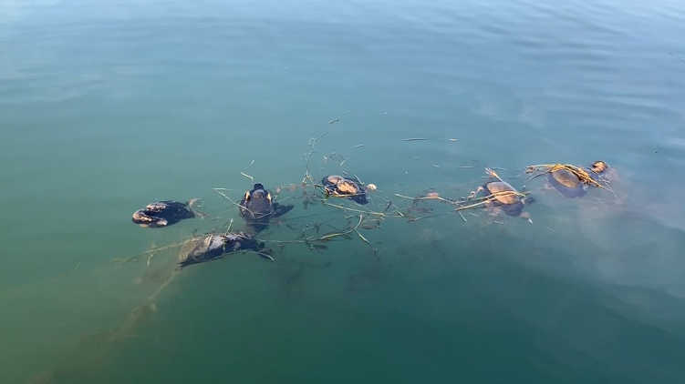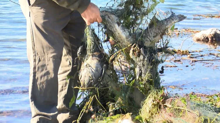 Çift yabani ördeklerin nasıl öldüğünü araştırdıklarında ise halk arasında “hayalet ağ” olarak bilinen misinadan yapılan bir ağa takıldıklarını tespit etti. Taha Tarhan eşiyle birlikte, küçük botlarıyla ağın ucunu bularak toplamaya karar verdiklerinde ise adeta 68 ördek, yüzlerce balık ölüsü ile karşılaştı.