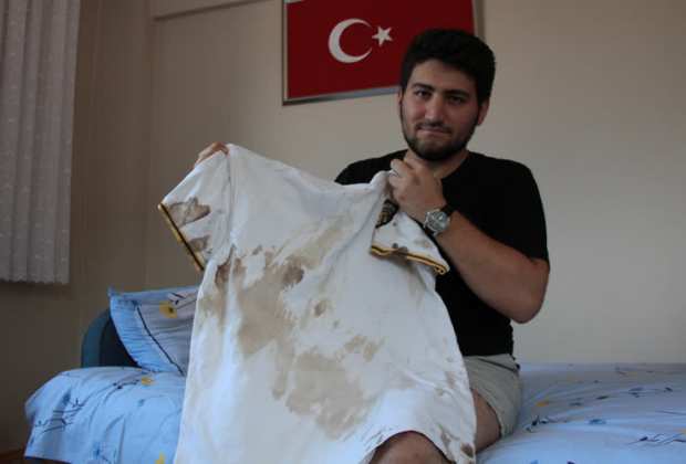 “Bizim korkmaya hiç niyetimiz yoktu. Vatan sevgisinin önüne hiçbir şey geçemez. Siviller, askerlerle konuşmaya çalışıyordu. Ben de o sırada video çekmeye başladım. Vatandaş, ‘Senin ne işin var burada? Kışlana git’ diyordu. Askerler sanki büyülü gibiydi hiçbir şekilde cevap vermiyor, boş boş bakıyorlardı. Yaklaşık 10 dakika sonra yukarıdan bizleri taramaya başladılar. Helikopterle, uçaksavarlarla üzerimize doğru ateş etmeye başladılar. Ben o anda yaralanmışım, hiç farkında değildim. Barutun kokusuyla içim yandı ve bağırmaya başladım. Kendimi bir ağacın dibine attım. Ömrümde ilk defa tank görüyorum ve karşısına geçip onu durdurmaya çalışıyorum. Külliye’nin oradan aşağıya doğru ilerledim. Vücuduma bakmak, hiç aklıma gelmiyordu. Daha sonra aklıma ağabeyim geldi, onunla konuşurken vücudumdan kanlar aktığını gördüm.”