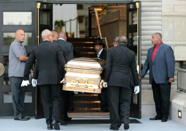 Aretha Franklin’in tabutu törenin yapılacağı müzeye klasik bir LaSalle Sedan marka araçla getirildi. Daha sonra da ailesi ve sevenlerinin son vedası için üzeri açık bir şekilde katafalka konuldu.