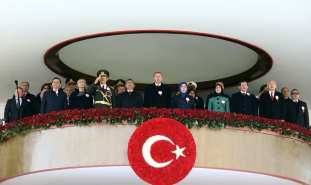 Kutlamaları şeref locasından kabul eden Cumhurbaşkanı Erdoğan’a, eşi Emine Erdoğan, TBMM Başkanı İsmet Yılmaz, Başbakan Ahmet Davutoğlu ve eşi Sare Davutoğlu, Genelkurmay Başkanı Orgeneral Akar, CHP Genel Başkanı Kemal Kılıçdaroğlu, Anayasa Mahkemesi Başkanı Zühtü Arslan, Yargıtay Başkanı İsmail Rüştü Cirit, Danıştay Başkanı Zerrin Güngör, Bakanlar Kurulu üyeleri ile kuvvet komutanları da katıldı.