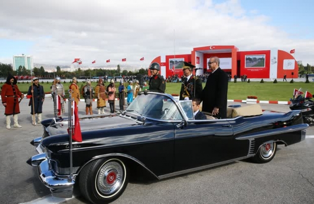 Kara Kuvvetleri Komutanlığı Atlı Spor Eğitim Merkezi Komutanlığının Atlı Tören Kıtası ve Cumhurbaşkanlığı Koruma Başkanlığı Motosikletli Timleri eşliğinde tören alanına gelen Cumhurbaşkanı Erdoğan, üstü açık klasik otomobilden tören birliklerini ve katılımcıları selamladı. Erdoğan’a, Genelkurmay Başkanı Orgeneral Hulusi Akar da eşlik etti.