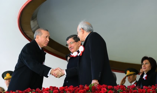 Cumhurbaşkanı Recep Tayyip Erdoğan, Atatürk Kültür Merkezi’nde düzenlenen Cumhuriyet Bayramı törenlerinde, Cumhuriyetin 92. yıl dönümünün hep birlikte sevinç, gurur ve coşkuyla yaşandığını belirterek, “Millet olarak gerçekten çok zor şartlarda kurduğumuz Türkiye Cumhuriyeti’ni muasır medeniyetler seviyesinin üzerine çıkarmak için 92 yıldır mücadele ediyoruz. Türkiye’yi bölgesinin ve dünyanın en önemli ülkelerinden, yükselen yıldızlarından biri haline getirdik. Bugün ülkemiz hamdolsun tüm mazlumların, mağdurların ümidi haline geldi” ifadelerini kullandı.