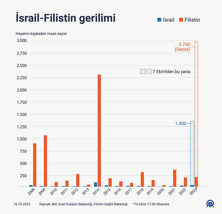İşgal altındaki Batı Şeria’da da İsrail güçlerinin ve Yahudi yerleşimcilerin saldırılarında 60 Filistinlinin öldüğü, yaklaşık 1250 kişinin yaralandığı belirtilmişti.
