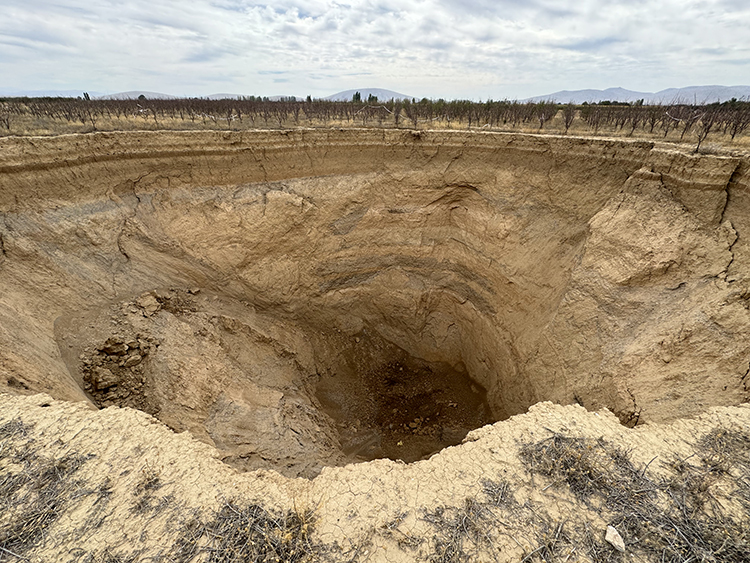 Akçaşehir Belde Belediye Başkanı Soner Yeşildaş, gazetecilere, belde merkezine 2 kilometre mesafedeki elma bahçesinde oluşan obruğun gün geçtikçe genişlediğini, bahçedeki ağaçların kuruduğunu söyledi.