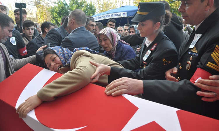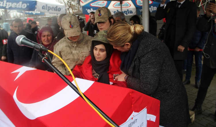 Şehit Fatih Akbulut’un cenazesinde 2 ay önce evlendiği eşi Funda, annesi Ayşe ve babası Mehmet Şerif Akbulut ile kardeşleri, tabuta sarılarak gözyaşı döktü.