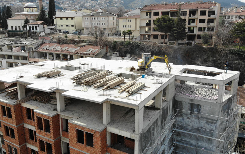 Belediye meclisinde alınan kararın ardından hızlıca harekete geçen Osmangazi Belediyesi Fen İşleri Müdürlüğü’ne bağlı ekipler, kamulaştırma çalışmaları tamamlanan inşaatın son 1,5 katının yıkım çalışmalarına başladı. Vinç yardımıyla inşaatın son katına çıkarılan iş makinesi, alınan çevre güvenliği altında yıkım çalışmalarını sürdürüyor.