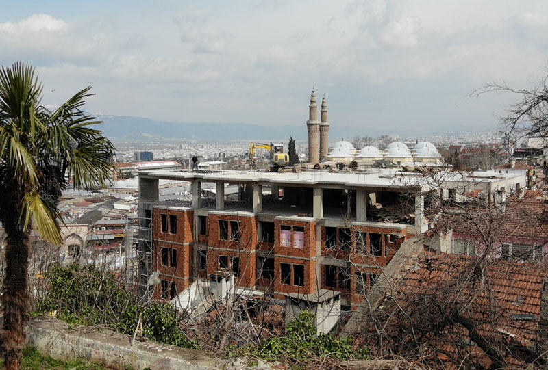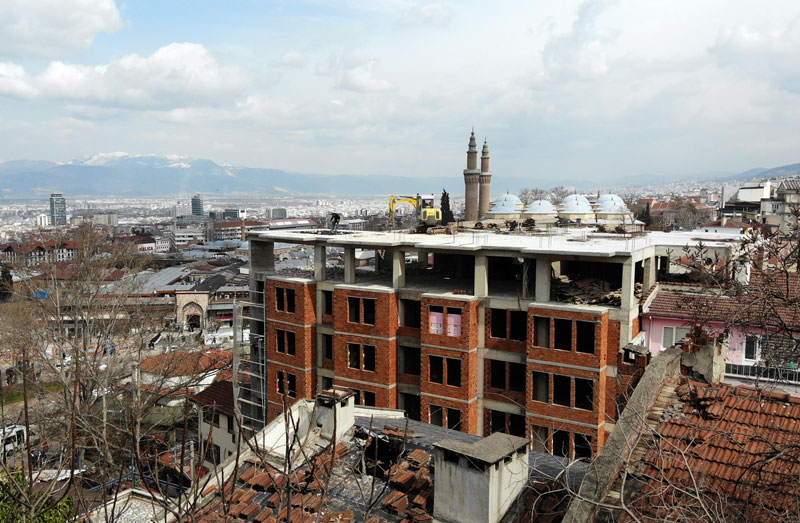 Tahtakale Mahallesi Temiz Cadde üzerinde, 1991 yılında onaylanan Muradiye Koruma Amaçlı İmar Planı’na göre inşaatı devam eden bir binanın, bölgede yapılması planlanan yeşil alanda özellikle Ulucami ve Hanlar Bölgesi manzarası önünde görüntü kirliliği oluşturduğu ortaya çıkmıştı.