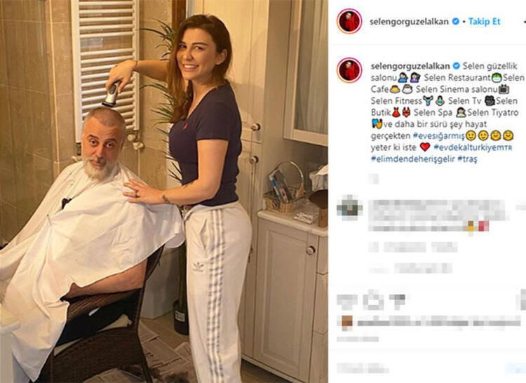 Pandemi döneminde eşi hamdi Alkan’ı tıraş eden Selen Görgüzel, o anları sosyal medya hesabından paylaşarak, “Selen güzellik salonu. Selen restaurant. Selen kafe. Selen sinema salonu. Selen fitness. Selen TV. Selen butik. Selen spa. Selen tiyatro ve daha bir sürü şey. Hayat gerçekten #evesığarmış” mesajını yazmıştı.