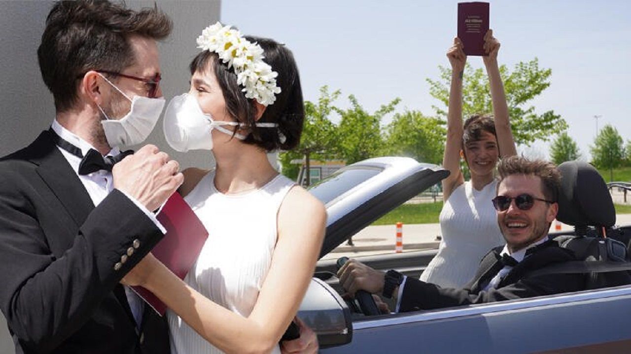 Küçükyalı Süreyya İlmen Paşa Evlendirme Dairesi’nde kıyılan nikâhta çiftin şahitliğini yönetmenler Fehmi Öztürk ve Mustafa Bilgin yaptı.