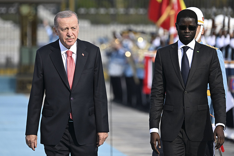 Cumhurbaşkanı Erdoğan, Fay’ı külliyenin ana giriş kapısında karşıladı. Erdoğan ve Fay’ın tören alanındaki yerlerini almasının ardından bando iki ülkenin milli marşlarını çaldı. Törende, tarihte kurulan 16 Türk devletini temsil eden bayraklar ve askerlere de yer verildi, 21 pare top atışı yapıldı.