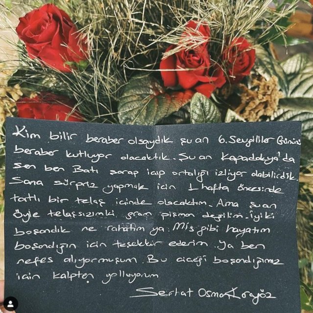 32 yaşındaki Serhat Osman Karagöz, gönderdiği çiçeğe şu notu düştü:
