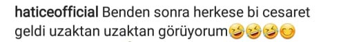 Hatice, Şeyma Subaşı’nın verdiği cesur pozlara ‘Benden sonra herkese bi cesaret geldi uzaktan uzaktan görüyorum’ diye yorum yaptı.
