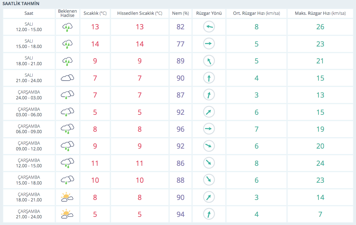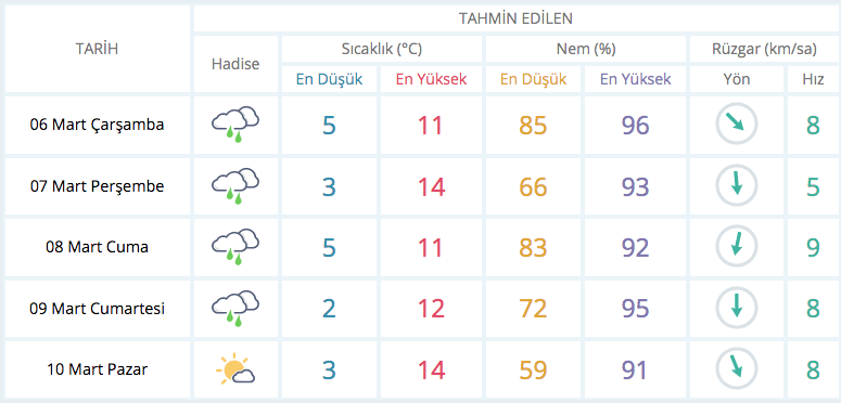 Meteoroloji’nin tahmin raporuna göre.Bursa’da 5 günlük hava durumu şöyle: