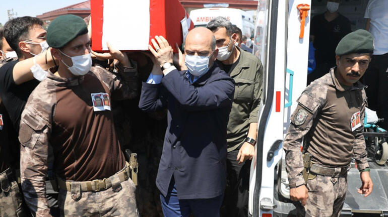 İl Müftüsü Vehap Kapıcıoğlu’nun okuduğu duanın ardından Bakan Soylu, Siirt Valisi Hacıbektaşoğlu ve silah arkadaşları tarafından omuz verilen şehitlerin cenazesi tekbirler eşliğinde ambulansa taşındı.