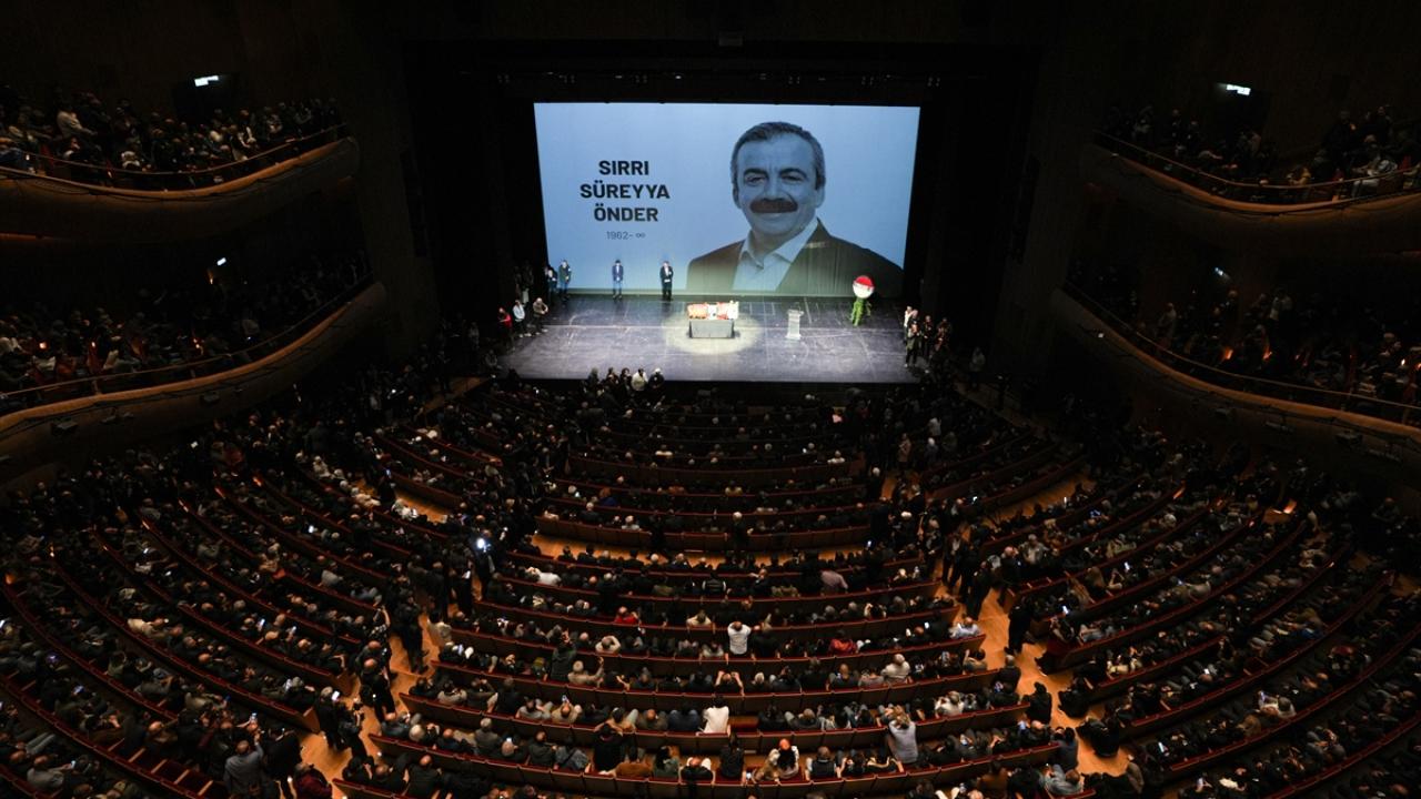 Kalp rahatsızlığı nedeniyle 18 gündür tedavi gördüğü hastanede dün vefat eden Önder’in tabutu AKM’deki sahneye alkışlarla getirildi. Türk bayrağına sarılı tabutun önüne Önder’in fotoğrafı ve çiçekler yerleştirildi.