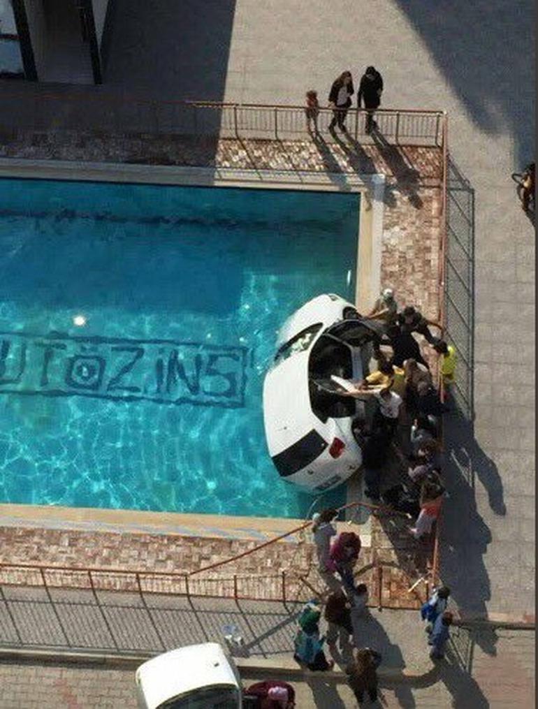 Olay, İzmir’in Buca ilçesine bağlı Yeşilbağlar Mahallesi’nde bulunan bir sitede meydana geldi. İddiaya göre, havuzun kenarında otomobilini park eden sürücü, aracı viteste çalıştırdı.