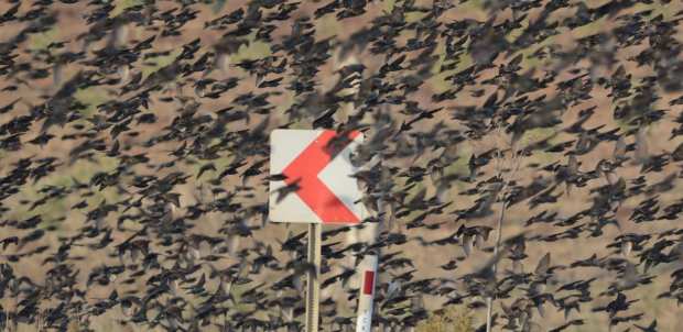 Doğa Fotoğrafçısı Alper Tüydeş tarafından Karacabey Bandırma karayolunda görüntülenen binlerce sığırcık, yolun üzerinde bir süre dinlendi.