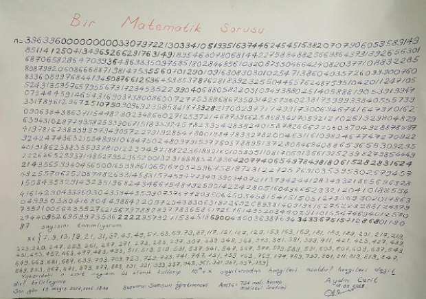 Samsun’da yaşayan emekli matematik öğretmeni Aydın Cerit, Türk malı yerli hesap makinesi yapılmasını sağlamak ve özellikle asal sayılar üzerine yaptığı çalışmalara dikkat çekmek için ödüllü bir matematik sorusu hazırladı. Cerit, soruyu çözüp 19 Mayıs 2017 saat 18.00’a kadar Samsun Öğretmenevi’ne gelip kendisine ulaştıran ilk kişiye bir ev, bir dükkan ve bankadaki bir miktar parasını vereceğini açıkladı.