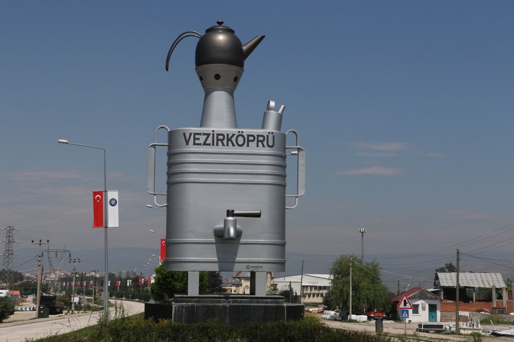 Samsun, Vezirköprü ilçesinin girişinde 2017 yılında yapılan yaklaşık 5 metrelik yassı semaver anıtı, son günlerde sosyal medyada eleştiri konusu oldu.