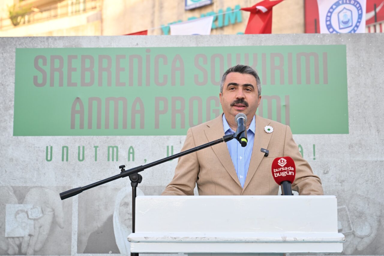 Bosna’da yaşanan acıların tazeliğini koruduğunu dile getiren Yıldırım Belediye Başkanı Oktay Yılmaz, “Binlerce insan isimlerinden, inançlarından ve kimliklerinden dolayı katledildi. İnsanlık tarihinin en kara lekelerinden birisi olan bu soykırımın acısını sadece biz değil, vicdan sahibi tüm insanlık, yüreğinde hissediyor. Sadece insanlar değil, bugün Bosna sokakları, binaları mezar taşları da bu matemi yaşatıyor. Bilge Kral Aliya Izzetbegoviç’in ‘Ne yaparsanız yapın soykırımı unutmayın. Çünkü unutulan soykırım tekrarlanır’ ifadelerini kendimize şiar edinerek yaşanan acıların tekrarlanmaması için bugün buradayız. Zalimlerin Srebrenitsa’da yaşam hakları gasp edilen, bir kabri dahi çok gördükleri kardeşlerimizi biz gönüllerimize kalbimize defnettik. Ancak ne aziz şehitlerimizi ne de yaşadığımızı acıları unutmayacağız bu hatıralarımızı her zaman diri tutacağız” diye konuştu.