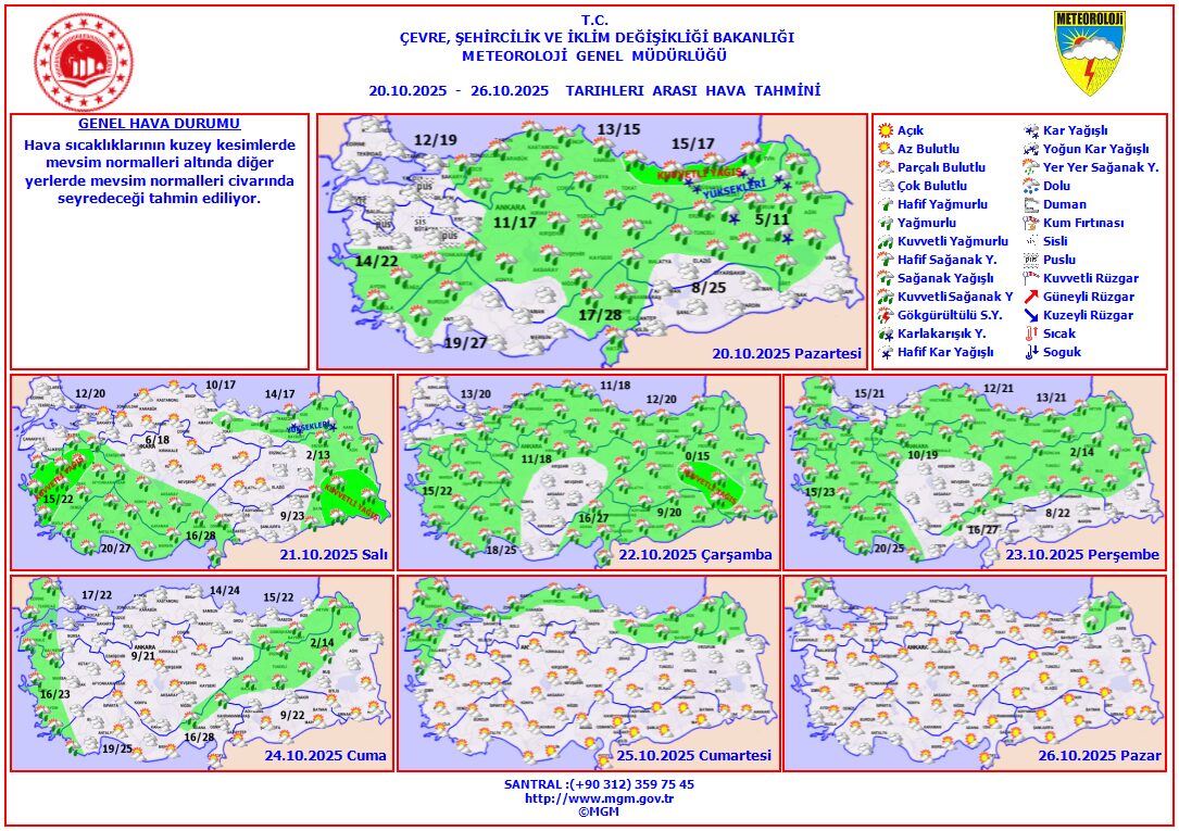 21 Ekim Salı: Çok bulutlu, 9°C / 22°C