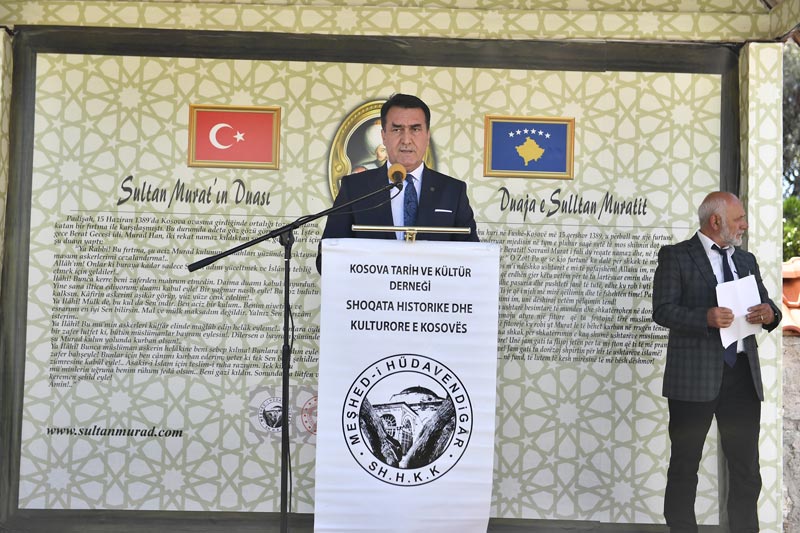 Türkiye Cumhuriyeti Kosova Büyükelçisi Çağrı Sakar da Murad Hüdavendigar’ın hem büyük bir asker hem de başarılı bir devlet adamı olduğunu dile getirerek, “Sultan Murad, ömrünü Balkanlar’a vakfetmiş, büyük başarılara imza atmış muzaffer bir komutan ve büyük bir lider olarak tarihimizdeki müstesna yerini almıştır. Sultan Murad’ıın türbesi Türkiye ile Kosova arasındaki ebedi kardeşliğinin köklü dostluğun ve muhabbetin sarsılmaz temelini teşkil etmektedir. Bu türbe Kosova Türkiye kardeşliğinin köklü geçmişinin şahidi, geleceğinin de teminatıdır. Türkiye ile Kosova arasındaki ilişkiler, yüzlerce yıl boyunca acıda, sevinçte, kederde ve mutlulukta bir olan atalarımızın bize emanetidir. Bugüne kadar tüm imkanlarımızla Kosova’nın yanında olduk, bu desteğimizi gelecekte de arttırarak sürdürmek istiyoruz” dedi.