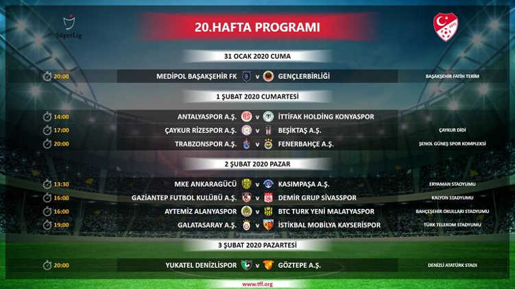 Türkiye Futbol Federasyonu, Süper Lig’de 18,19 ve 20. haftalarda oynanacak maçların programını açıkladı.