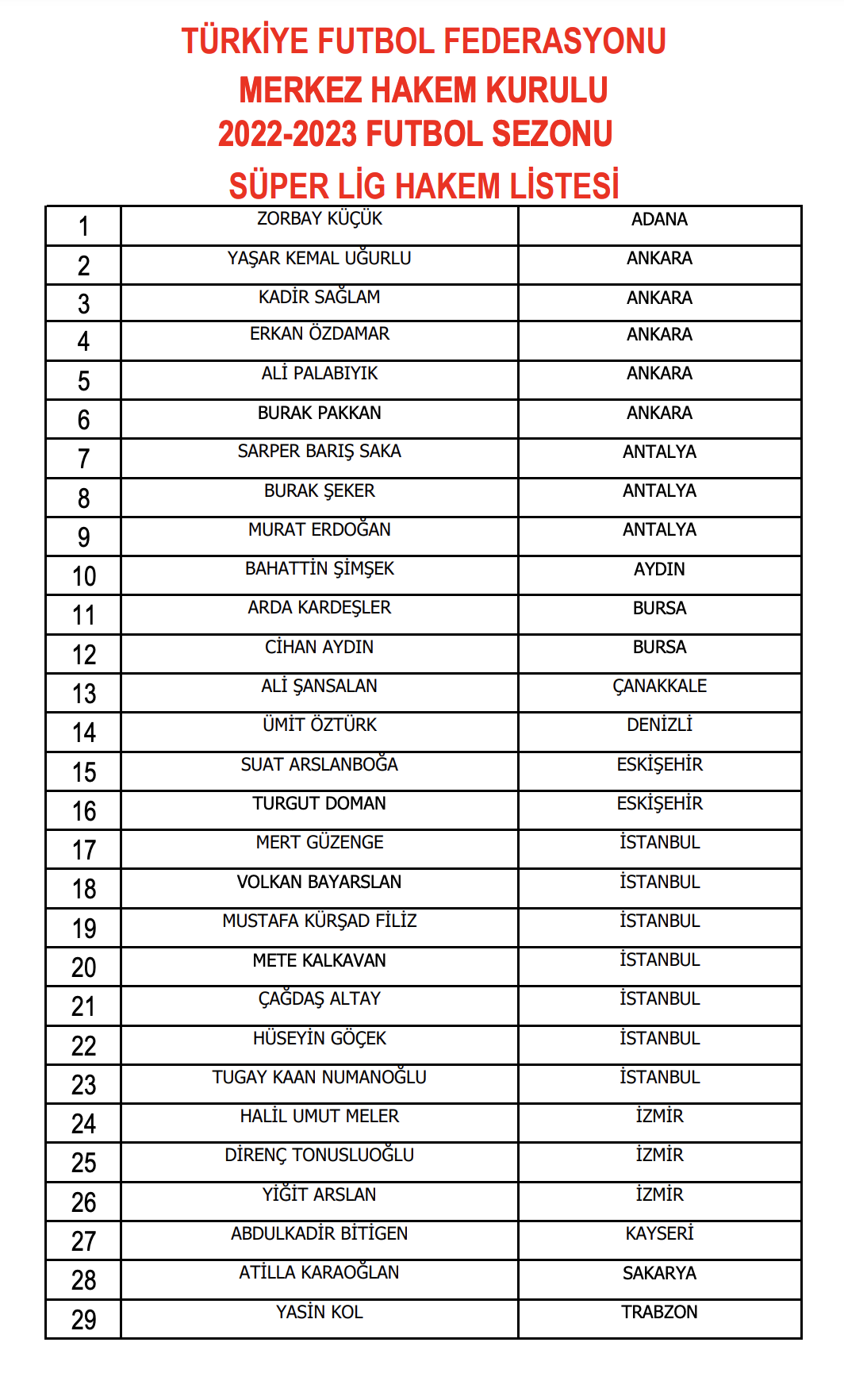 2022-2023 futbol sezonu devre arası hakem ve gözlemci klasman listeleri için tıklayınız