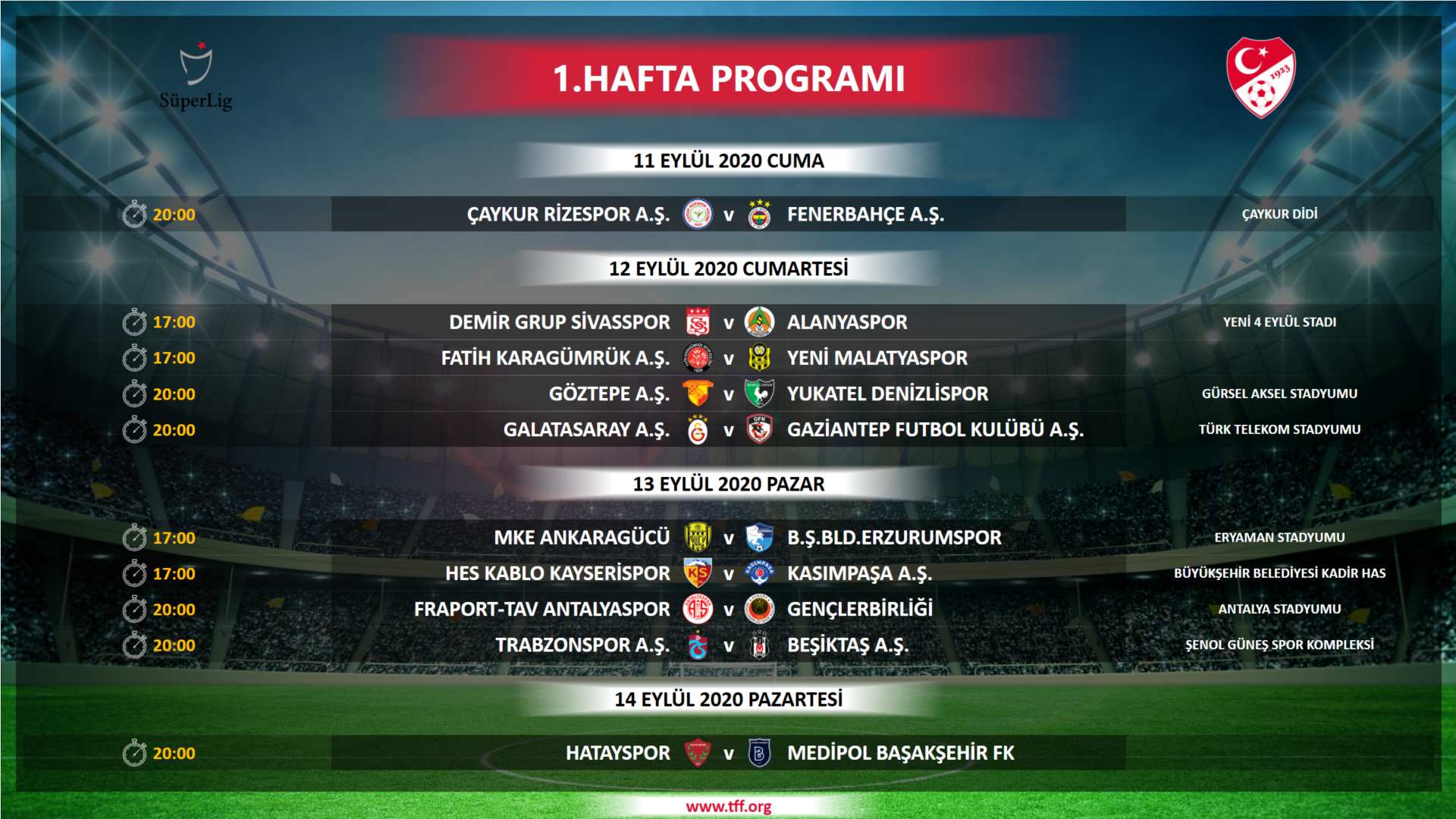Ana Sayfa › Final › Futbol › Süper Lig’de ilk 4 hafta açıklandı… İşte program…Süper Lig’de ilk 4 hafta açıklandı… İşte program… 2020-2021 Sezonu Süper Lig 1, 2, 3 ve 4. hafta programları açıklandı. Giriş: 01-09-2020 11:19Kaynak: FutbolFinal ABONE OL + - Karşılaşma programları şöyle: HABERİ PAYLAŞ