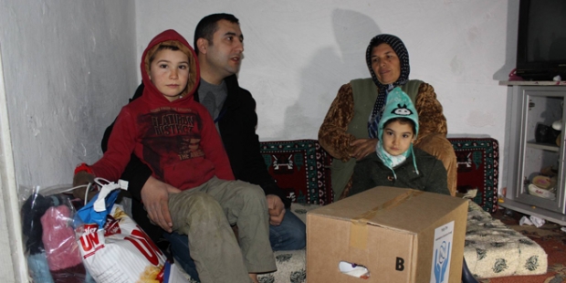 Tek göz odalı evinde 5 çocuğuyla yaşayan Bayırbucak Türkmenlerinden Hatice Ali, karlı kış gününde kapısını çalan yardım derneğini karşısında görünce sevindi. Eşi Suriye’de kalan Hatice Ali, çocukları Naime, Mustafa, Vara, Meryem ve Nediye ile birlikte yaşıyor. Her gün 5 çocuğuna bakmak için sabah 04:00’den akşam 21:00’e kadar kağıt toplayan Hatice Ali, günlük 20 lira kazanıyor. Bu parayla evin kirası ve elektrik su, masraflarını ödeyince çocuklarına erzak alacak parası kalmayan Hatice Ali’ye Yetiş Tim Yardımlaşma Derneği erzak ve yakacak yardımı yaptı. Ailenin en küçük ferdi 6 yaşındaki Mustafa’nın ayağında çorabının bile olmadığı görüldü.