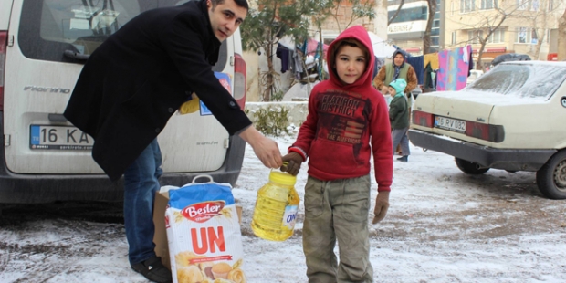 İç savaştan kaçarak Bursa’ya yerleşen, kiminin ayakları tutmayan, kiminin ise ayağına giyecek çorabı olamayan Suriyeli ailelerin imdadına Yetiş Tim Yardımlaşma Derneği yetişti. Dernek çalışanları kar altında tek göz odalı evlerinde aç bekleyen ailelere erzak ve yakacak yardımı yaptı.