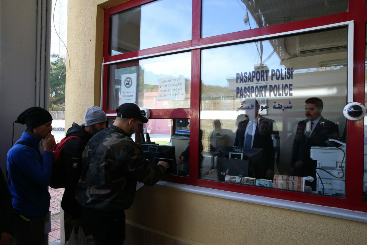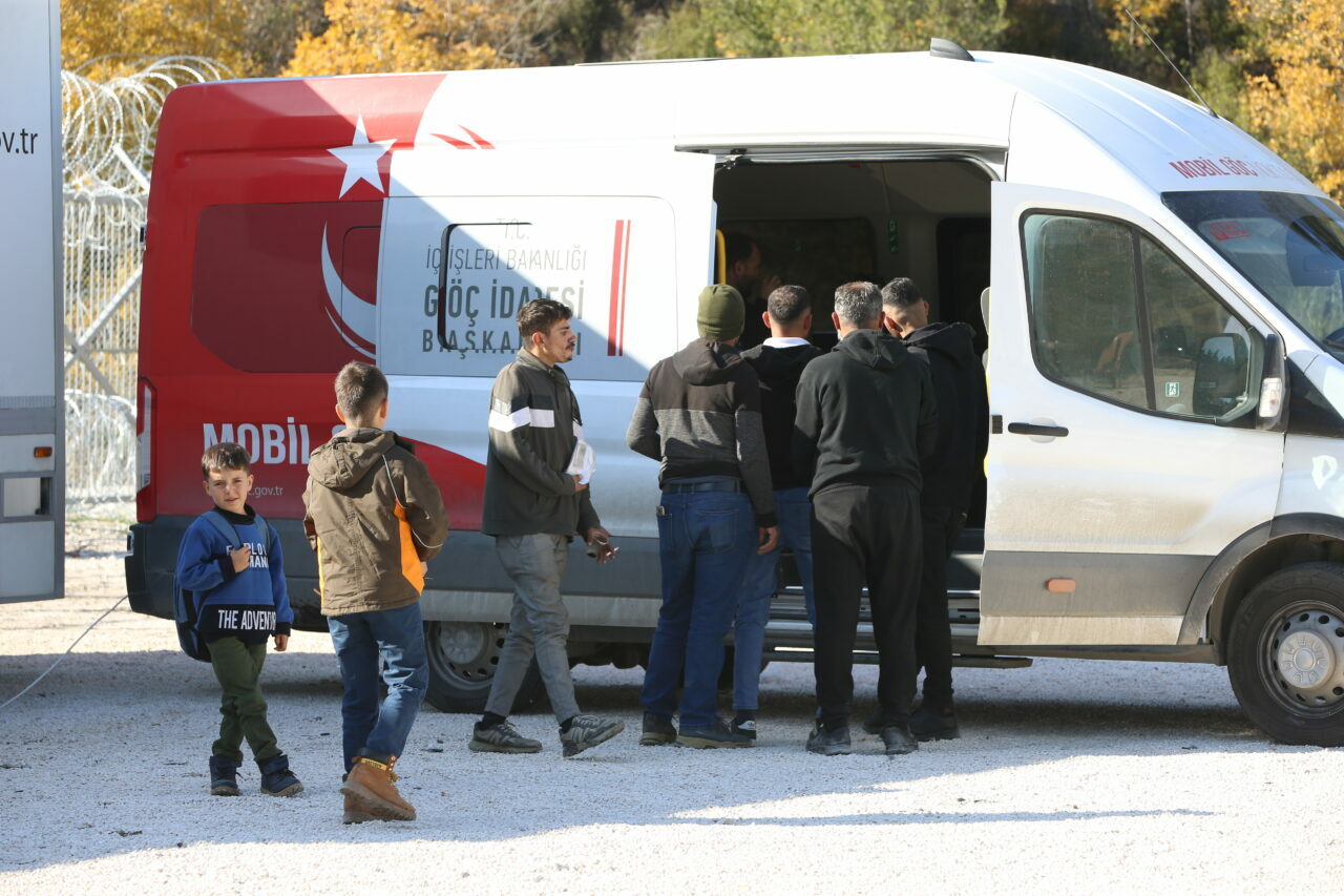 Sınır kapısı yakınında konuşlandırılan Göç İdaresi Mobil Hizmet Birimi aracı, Suriyelilerin çıkış işlemlerinin hızlanmasına katkı sağlıyor.