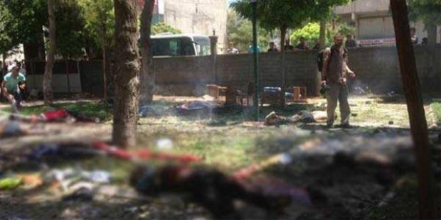 Şanlıurfa’nın Suruç İlçesi’ndeki Amara Kültür Merkezi önündeki çay bahçesinde bugün saat 11.50 sıralarında saatlerinde, Sosyalist Gençlik Dernekleri Federasyonu mensuplarının ‘Kobani’nin yeniden inşası’ konusunda basın açıklaması yaptığı sırada, büyük bir patlama meydana geldi.